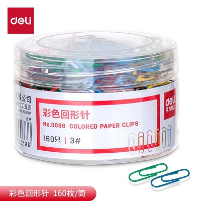 首页 > 办公用品 > 文具 > 得力0038 镀镍彩色回形针 3#曲别针 160枚/筒