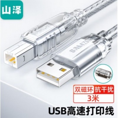 山泽(SAMZHE) USB打印机线3米 双屏蔽 usb2.0方口数据线 AM/BM 支持惠普佳能爱普生打印机