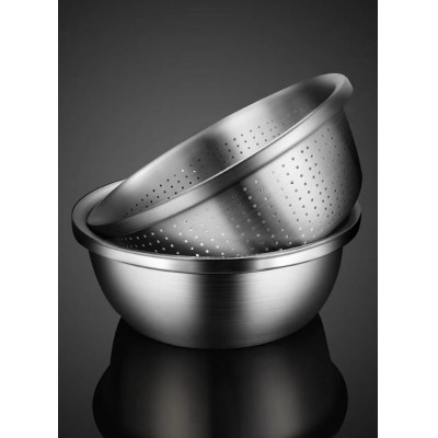 首页 > 用具 > 其他厨房用具 > 304不锈钢盆筛两件套28cm 双层汤盆沥水篮 漏筛