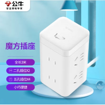 公牛(BULL) 大魔方插座 插线板/插排/排插/接线板/拖线板 GNV-UE2240 白色魔方6位插座全长3米