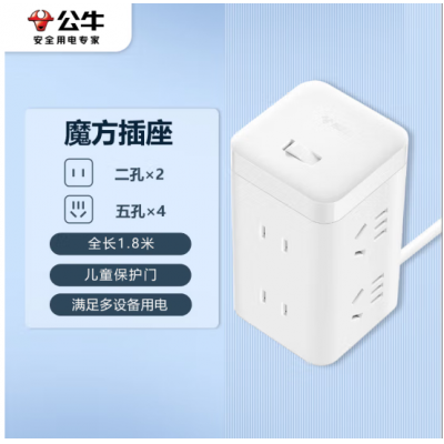 首页 > 建筑建材 > 开关插座 > 公牛(BULL) 大魔方插座 GNV-UE2240 插线板/插排/排插/接线板/拖线板 白色魔方6位插座全长1.8米