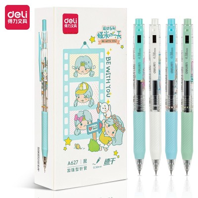 首页 > 办公用品 > > 得力A627按动学生中性笔0.38mm加强型针管(黑)12支