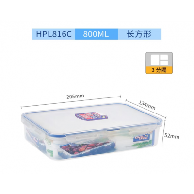 乐扣乐扣(LOCK&LOCK)HPL816C 塑料保鲜盒 大容量透明收纳盒 便当盒 800ML