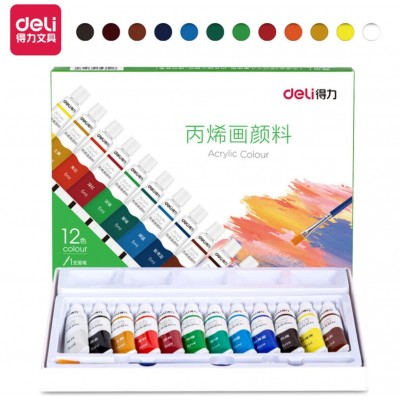 得力73913 12色5ml丙烯颜料(混)(盒)
