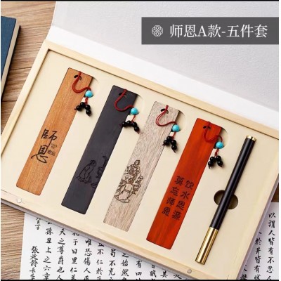 古风木质书签古典中国风高档精致礼盒 五件套-师恩难忘