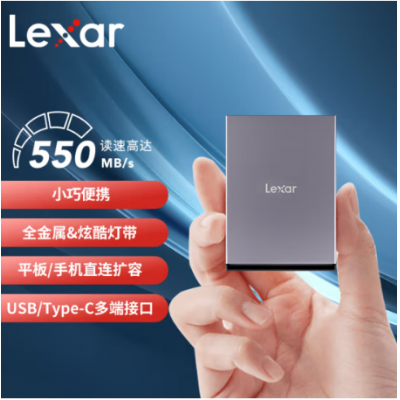 首页 > 信息化设备 > 移动存储设备 > 雷克沙 (Lexar )500G Type-c USB3.1 LSL210X500G-RNNNC 移动固态硬盘(PSSD) SL210 传输速度550MB/s 高档全金属 炫酷灯带
