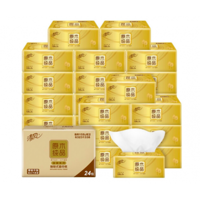 清风抽纸BR15SJ24E纸巾 金装原木3层130抽 24包/箱
