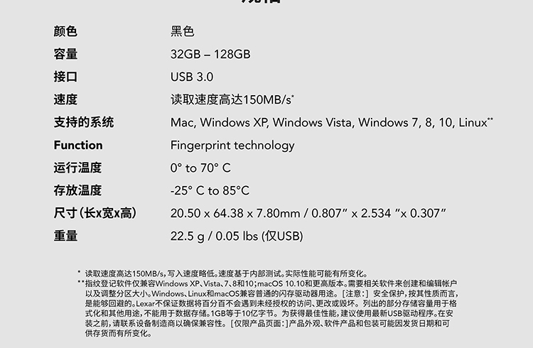 首页 > 信息化设备 > 移动存储设备 > 【雷克沙LJDF35_128BAP】雷克沙(Lexar)128G USB3.0 U盘 F35 读速150MB_s 金属指纹加密U盘 保护隐私安全
