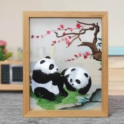 首页 > 办公用品 > 教具 > 蜀绣雪娃娃熊猫双面刺绣摆件工艺品中国特色礼物 梅花熊猫