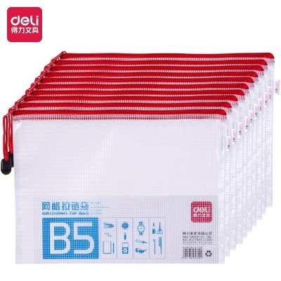 得力(deli)10只B5网格拉链袋透明文件袋 学生资料收纳袋 红5655