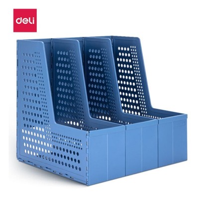 得力(deli)新型折叠三联文件框文件架 自由伸缩 深蓝79005