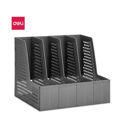 得力(deli)新型折叠四联文件框文件架自由伸缩 深灰79006