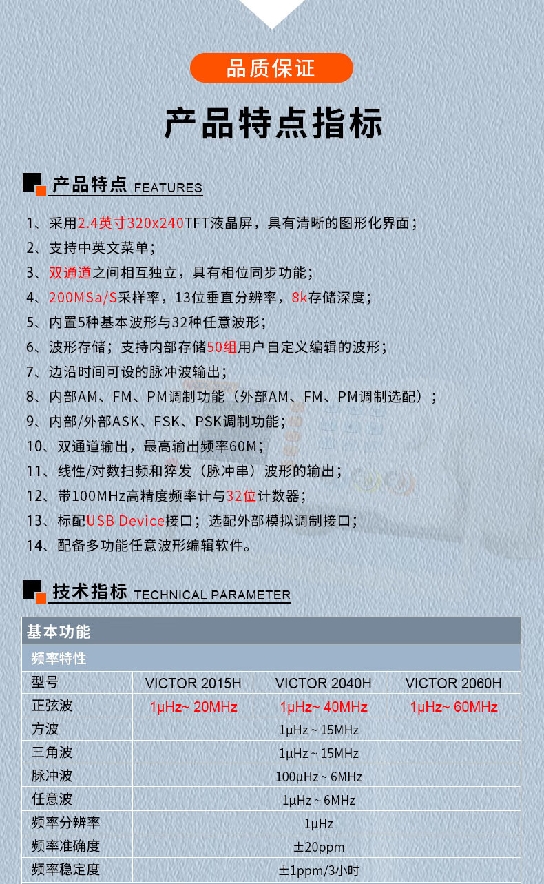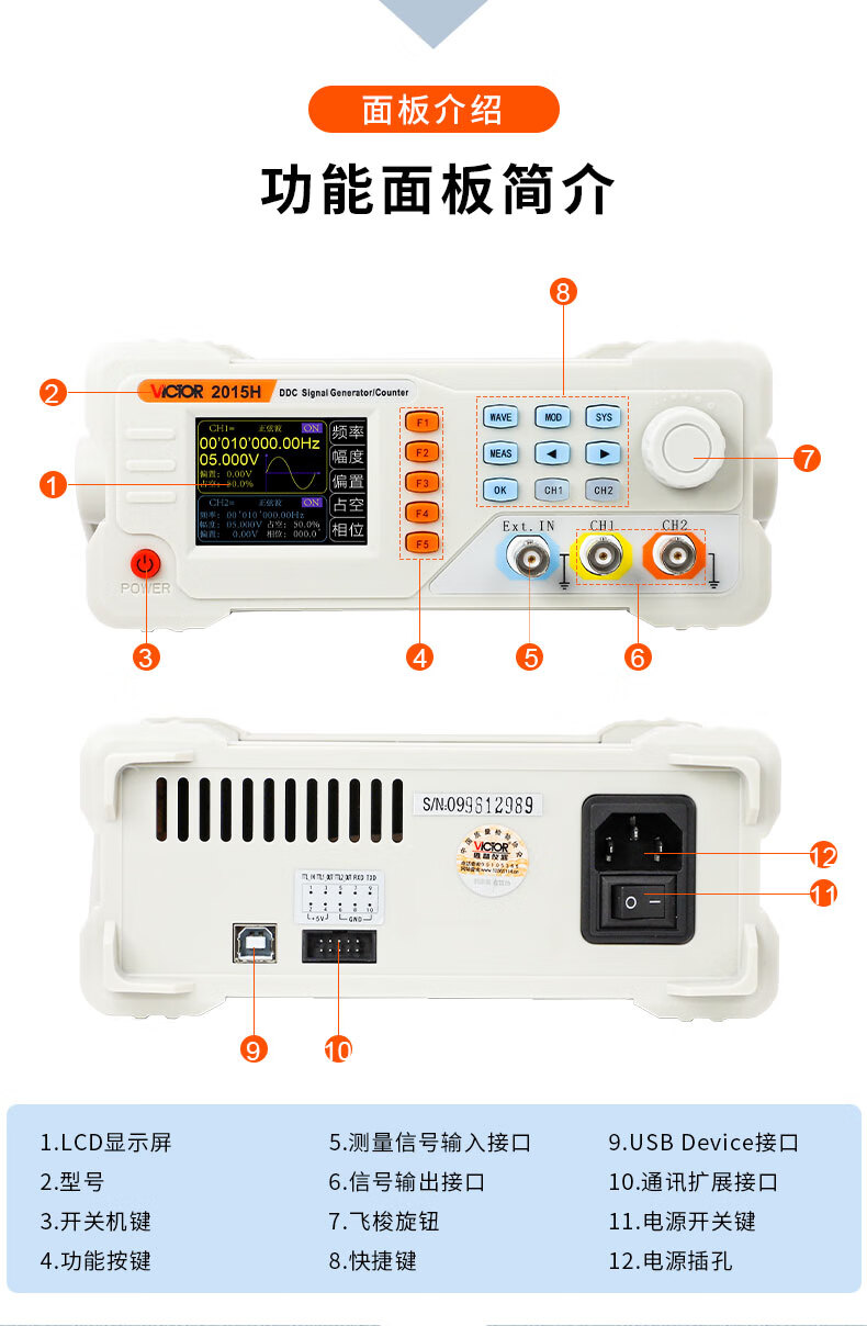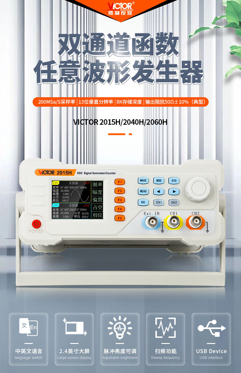 胜利仪器(VICTOR)函数信号发生器任意波形频率计方波脉冲信号源正弦波等 VC2015H