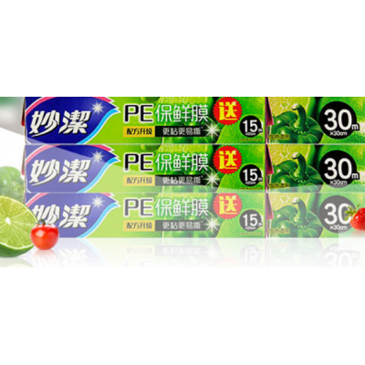 首页 > 用具 > 其他厨房用具 > 妙洁 M100*M50S 保鲜膜 30m*30cm