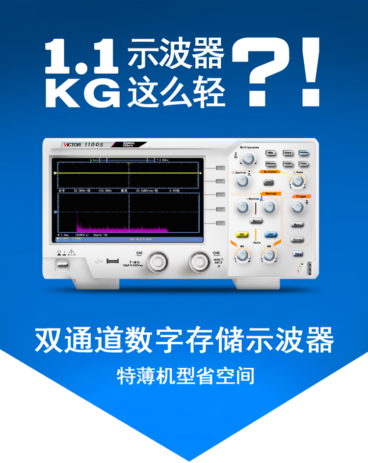 首页 > 建筑建材 > 电工电料 > 胜利仪器(VICTOR)数字示波器 200M 双通道存储 示波器带探头 示波仪 示波表 1G采样率 VC1200S