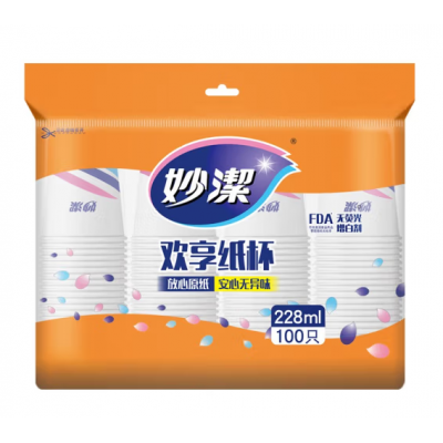 妙洁 MDCB100-B-44 一次性纸杯 商务 办公 纸杯 228ml*100 100只装