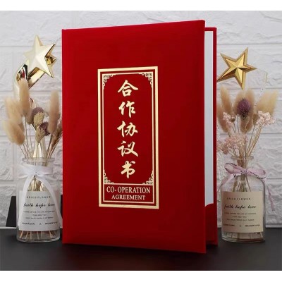 绒面商务签约本签到本 合同夹签约夹 合同本文件夹办公用品 红绒面皮演讲A4资料夹