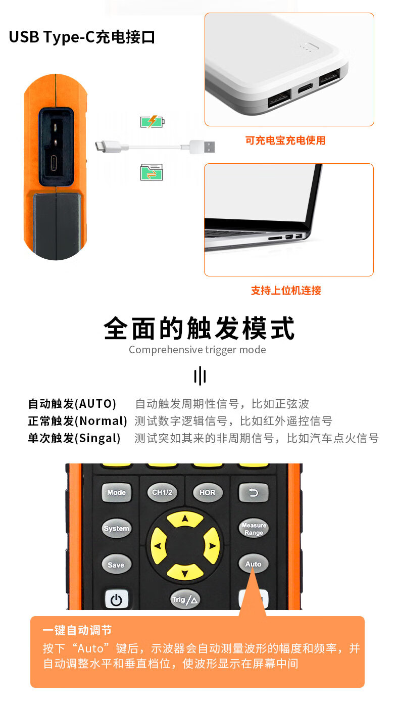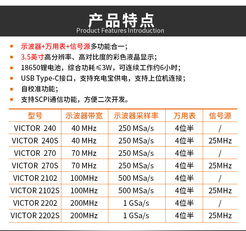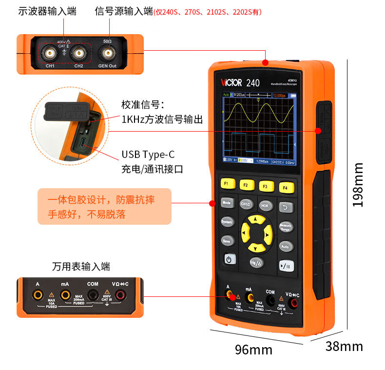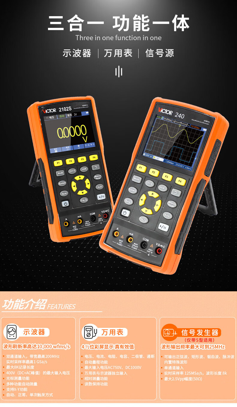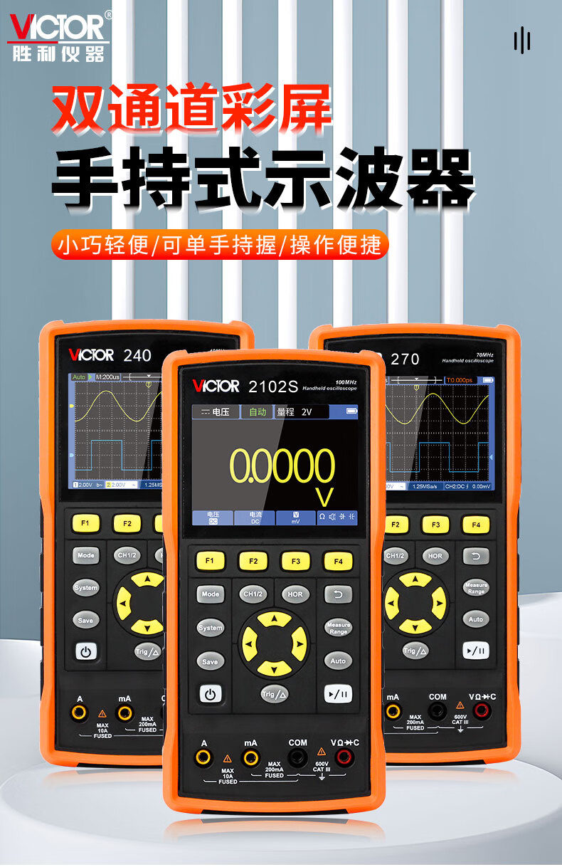 胜利仪器(VICTOR)手持双通道彩屏示波器万用表信号源VC2102S
