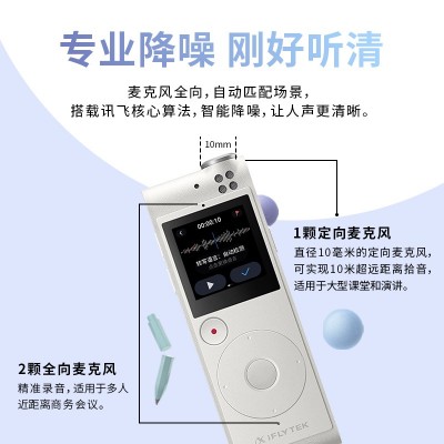 首页 > 广播、电视、电影设备 > 音频设备 > 录音设备 > 科大讯飞AI智能录音笔SR101 免费转写 远距离中英文实时互转 智能整理 多端同步 8G+云储存 象牙白