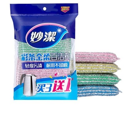 首页 > 装具 > 盥洗、厨房用织物制品 > 妙洁 彩条金柔百洁布清洁布4片一包