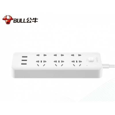 首页 > 建筑建材 > 开关插座 > (BULL)新国标USB插座/插线板/插排/排插/接线板 3插孔+3USB口带保护门插座 GN-B333U 6孔+3usb 总控3米
