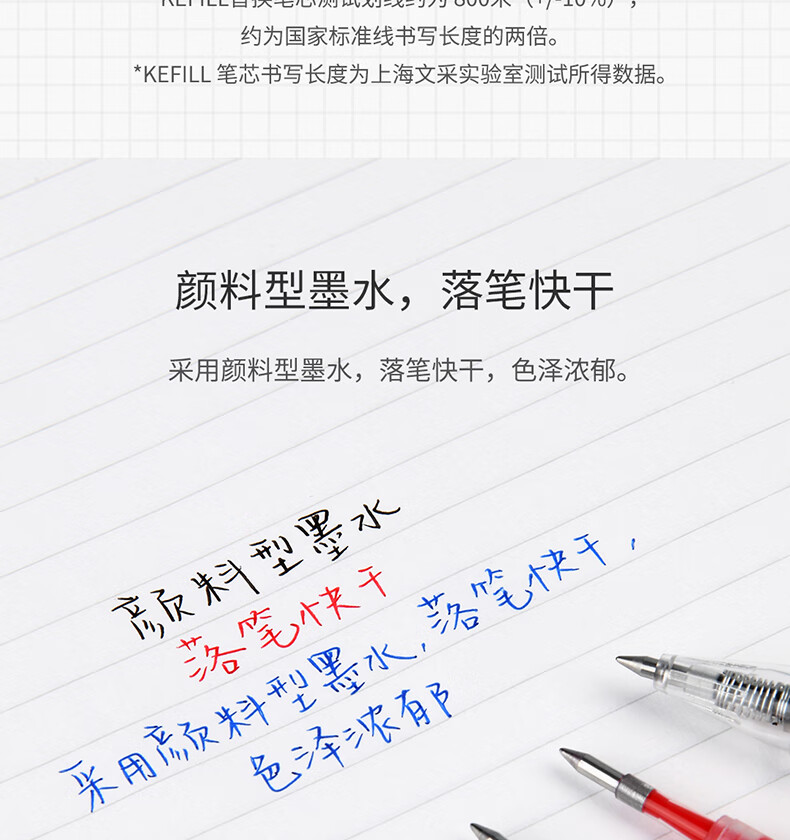 首页 > 办公用品 > 文具 > KACO亚规Kefill双倍书写长度按动中性笔芯0.5mm双球珠子弹头签字笔替芯蓝色不漏墨10支装/盒 K1622