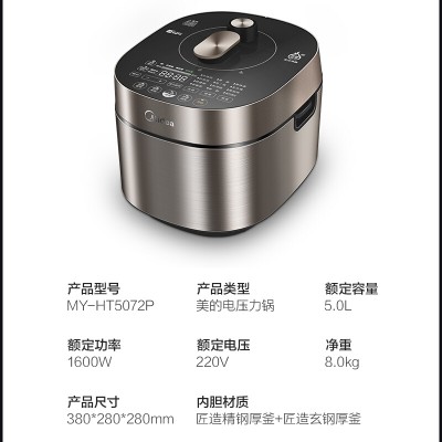 首页 > 电气设备 > 烹调电器 > 美的5L电压力锅IH大火力智能电压力煲变压沸腾MY-HT5077P 5升IH电磁加热WIFI操控