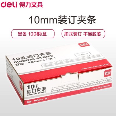 得力3827-10孔装订夹条(黑)300*10mm(100支/盒)d