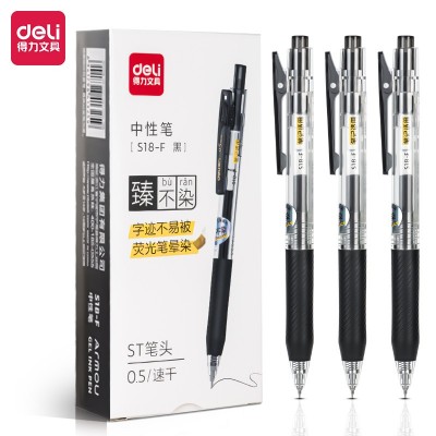 得力S18-F抗晕染学生按动中性笔0.5mmST头(黑)(支)