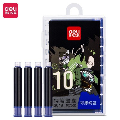 得力S649钢笔墨囊(可擦纯蓝)(10支/盒)