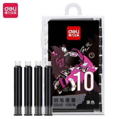 得力S649钢笔墨囊(黑色)(10支/盒)