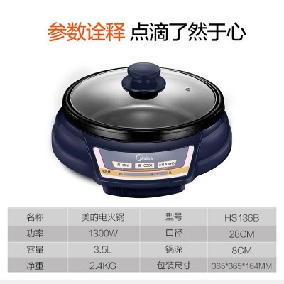 首页 > 电气设备 > 烹调电器 > 美的(Midea)HS136B 电火锅多用途锅家用电煮锅3.5L