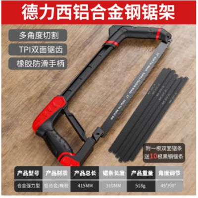 德力西强力钢锯架锯子家用小型手持钢锯+铝合金钢锯 11根锯条