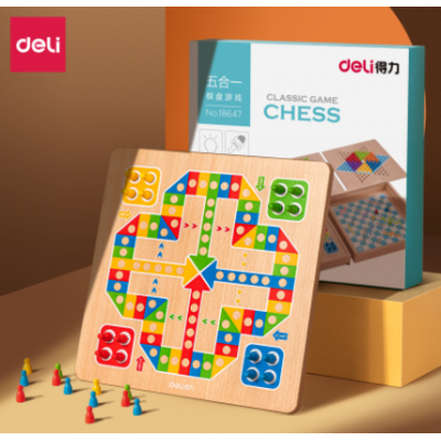 得力18646飞行棋+跳棋二合一棋(原木色)(盒)