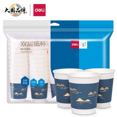 得力(deli)双层一次性纸杯 280ml 50只装 蓝色19215
