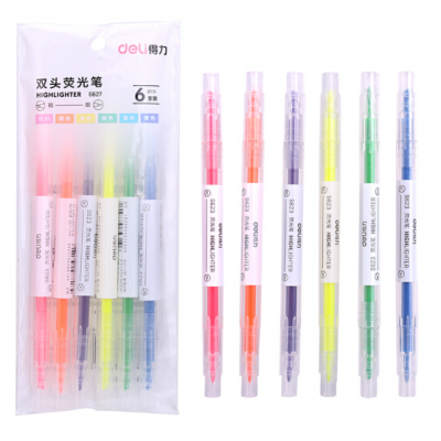 得力(deli) S627 彩色双头荧光笔 水性记号笔手账涂鸦笔 重点标记笔 6支/盒