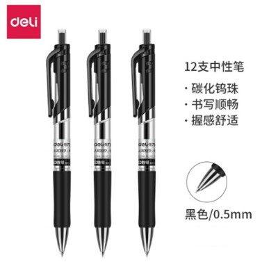 首页 > 办公用品 > > 得力(deli)S01中性笔签字笔 0.5mm子弹头经典办公按动笔水笔 黑色12支/盒