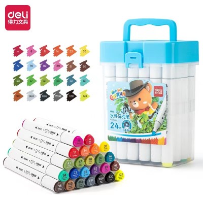 得力HM105水性马克笔学生儿童绘画三角杆PP盒装可水洗彩色笔 HM105-24黄蓝随机发货