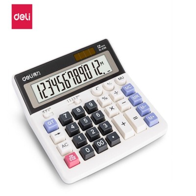 得力(deli)双电源电脑得力(deli)双电源电脑按键计算器 12位大屏横式桌面计算机 财务及银行人员适用 办公用品 白色2136