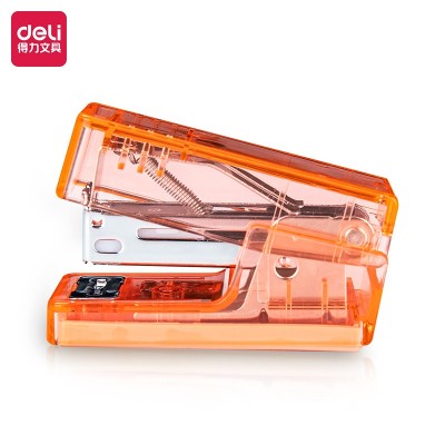 首页 > 办公用品 > 文具 > 得力(deli) 纽赛NS083F透明迷你订书机(透明橙)(1订书机+1盒钉/盒)