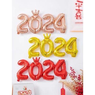 新年元旦装饰16寸2024数字气球套装年会聚会活动布置拍照道具(颜色可选)