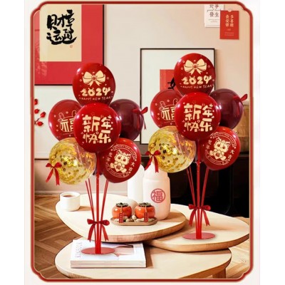 元旦春节装饰新年龙年气球装饰2024过年装饰桌飘套餐(15个气球混装+支架+丝带)