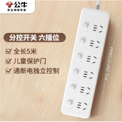 公牛(BULL)GN-B2063 新国标分控插座 6位分控全长5米 独立开关