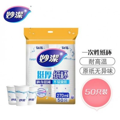 妙洁一次性纸杯加厚防烫50只大号