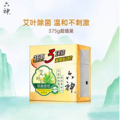 首页 > 办公用品 > 肥(香)皂和合成洗涤剂 > 六神 艾叶滋润香皂125g*3
