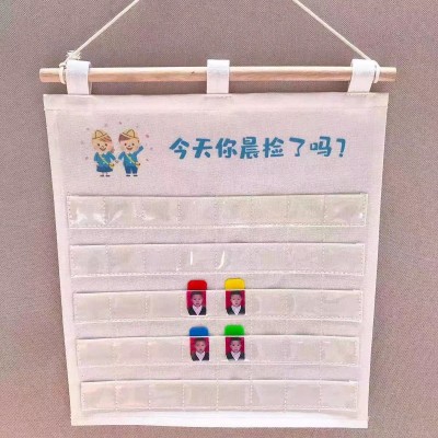 首页 > 办公用品 > 教具 > 巨联/JULIAN幼儿园晨检袋双层加厚防水帆布袋健康卡片晨检牌袋 白色40格双层