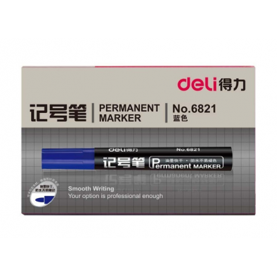 得力(deli) 6821油性粗头记号 10支/盒 (蓝色)