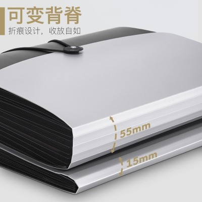 得力(deli)A4风琴包大容量拼色分类多功能收纳盒手提档案资料袋票据归类整理 单个装黑色-5558