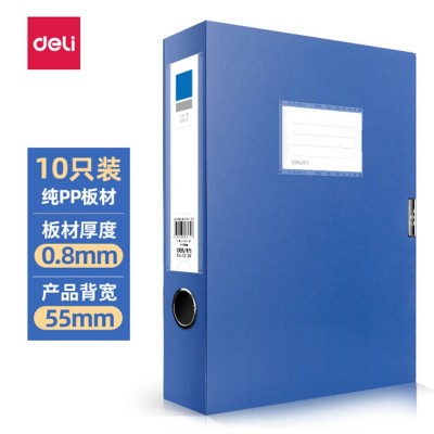 得力(deli)10只55mmA4塑料文件盒 加厚档案盒 33126蓝色