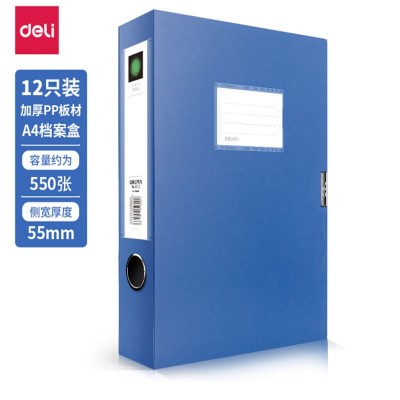 得力(deli)12只55mmA4加厚档案盒 塑料文件盒 资料收纳盒 财务用品 办公用品5603蓝色